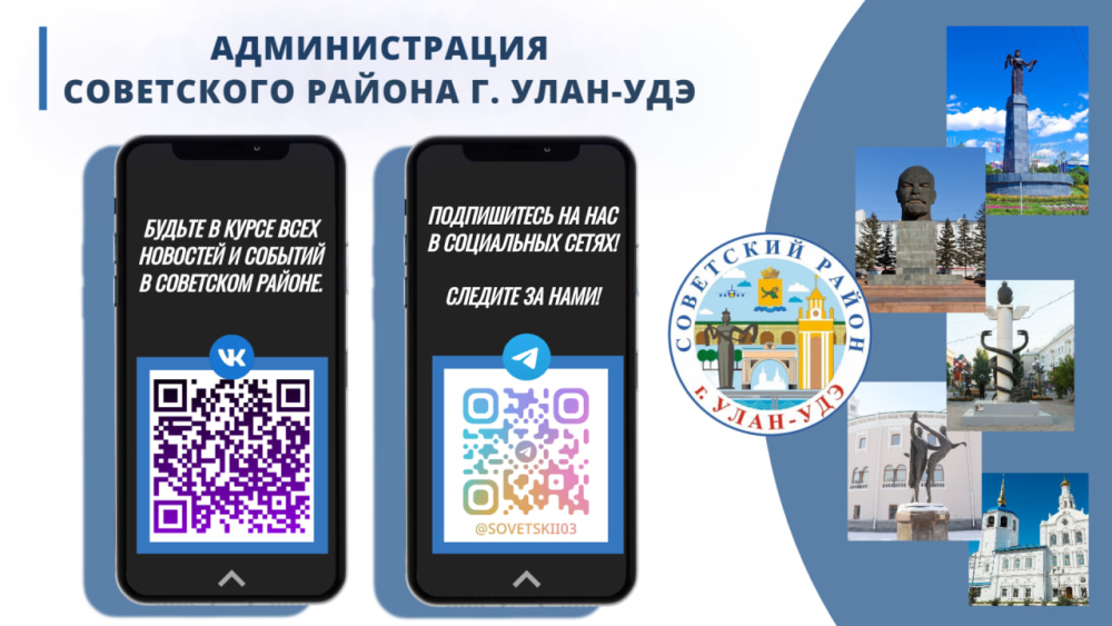 Администрация Советского района г. Улан-Удэ активно работает над развитием и продвижением своих социальных сетей. Там регулярно публикуется полезная, актуальная и своевременная информация, важная как для жителей района, так и всего города.